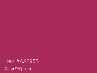 Hex #aa295b Color is a normal rose color and the nearest color is Rich Maroon #b03060. Hex code #aa295b and RGB value is rgb(170,41,91). In RGB color space, this color is composed of 67% red, 16% green, 36% blue, In CMYK color space, this color is composed of 0% cyan, 76% magenta, 46% yellow , 33% black , In HSL color space, this color has a hue angle of 337° , 61% saturation and 41% lightness.