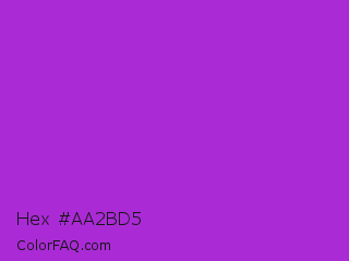 Hex #aa2bd5 Color is a normal purple color and the nearest color is Dark Orchid #9932cc. Hex code #aa2bd5 and RGB value is rgb(170,43,213). In RGB color space, this color is composed of 67% red, 17% green, 84% blue, In CMYK color space, this color is composed of 20% cyan, 80% magenta, 0% yellow , 16% black , In HSL color space, this color has a hue angle of 285° , 67% saturation and 50% lightness.