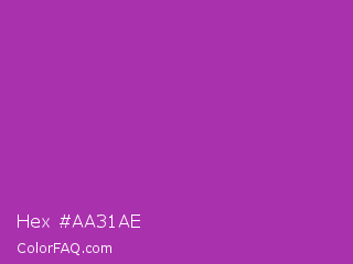 Hex #aa31ae Color is a normal magenta color and the nearest color is Byzantine #bd33a4. Hex code #aa31ae and RGB value is rgb(170,49,174). In RGB color space, this color is composed of 67% red, 19% green, 68% blue, In CMYK color space, this color is composed of 2% cyan, 72% magenta, 0% yellow , 32% black , In HSL color space, this color has a hue angle of 298° , 56% saturation and 44% lightness.