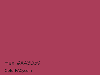 Hex #aa3d59 Color is a normal red color and the nearest color is Night Shadz #aa375a. Hex code #aa3d59 and RGB value is rgb(170,61,89). In RGB color space, this color is composed of 67% red, 24% green, 35% blue, In CMYK color space, this color is composed of 0% cyan, 64% magenta, 48% yellow , 33% black , In HSL color space, this color has a hue angle of 345° , 47% saturation and 45% lightness.