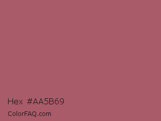Hex #aa5b69 Color is a normal red color and the nearest color is Deep Puce #a95c68. Hex code #aa5b69 and RGB value is rgb(170,91,105). In RGB color space, this color is composed of 67% red, 36% green, 41% blue, In CMYK color space, this color is composed of 0% cyan, 46% magenta, 38% yellow , 33% black , In HSL color space, this color has a hue angle of 349° , 32% saturation and 51% lightness.