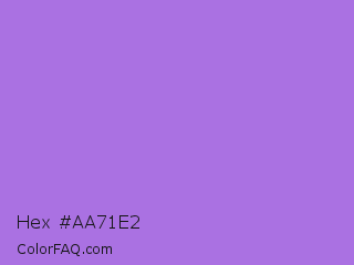 Hex #aa71e2 Color is a light violet color and the nearest color is Lavender #b57edc. Hex code #aa71e2 and RGB value is rgb(170,113,226). In RGB color space, this color is composed of 67% red, 44% green, 89% blue, In CMYK color space, this color is composed of 25% cyan, 50% magenta, 0% yellow , 11% black , In HSL color space, this color has a hue angle of 270° , 66% saturation and 66% lightness.