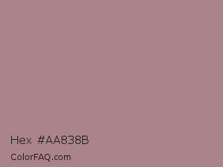 Hex #aa838b Color is a normal red color and the nearest color is English Lavender #b48395. Hex code #aa838b and RGB value is rgb(170,131,139). In RGB color space, this color is composed of 67% red, 51% green, 55% blue, In CMYK color space, this color is composed of 0% cyan, 23% magenta, 18% yellow , 33% black , In HSL color space, this color has a hue angle of 348° , 19% saturation and 59% lightness.