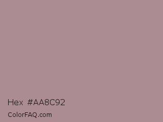 Hex #aa8c92 Color is a light red color and the nearest color is English Lavender #b48395. Hex code #aa8c92 and RGB value is rgb(170,140,146). In RGB color space, this color is composed of 67% red, 55% green, 57% blue, In CMYK color space, this color is composed of 0% cyan, 18% magenta, 14% yellow , 33% black , In HSL color space, this color has a hue angle of 348° , 15% saturation and 61% lightness.