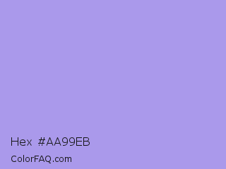 Hex #aa99eb Color is a light indigo color and the nearest color is Dull Lavender #a899e6. Hex code #aa99eb and RGB value is rgb(170,153,235). In RGB color space, this color is composed of 67% red, 60% green, 92% blue, In CMYK color space, this color is composed of 28% cyan, 35% magenta, 0% yellow , 8% black , In HSL color space, this color has a hue angle of 252° , 67% saturation and 76% lightness.