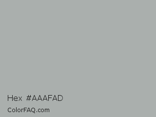 Hex #aaafad Color is a light green color and the nearest color is Silver Chalice #acacac. Hex code #aaafad and RGB value is rgb(170,175,173). In RGB color space, this color is composed of 67% red, 69% green, 68% blue, In CMYK color space, this color is composed of 3% cyan, 0% magenta, 1% yellow , 31% black , In HSL color space, this color has a hue angle of 156° , 3% saturation and 68% lightness.