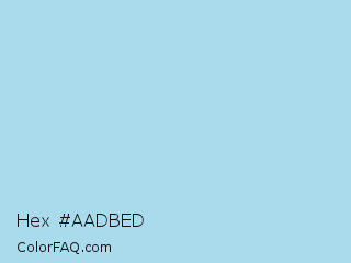 Hex #aadbed Color is a light blue color and the nearest color is Non Photo Blue #a4dded. Hex code #aadbed and RGB value is rgb(170,219,237). In RGB color space, this color is composed of 67% red, 86% green, 93% blue, In CMYK color space, this color is composed of 28% cyan, 8% magenta, 0% yellow , 7% black , In HSL color space, this color has a hue angle of 196° , 65% saturation and 80% lightness.