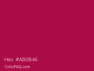 Hex #ab0b46 Color is a normal rose color and the nearest color is French Wine #ac1e44. Hex code #ab0b46 and RGB value is rgb(171,11,70). In RGB color space, this color is composed of 67% red, 4% green, 27% blue, In CMYK color space, this color is composed of 0% cyan, 94% magenta, 59% yellow , 33% black , In HSL color space, this color has a hue angle of 338° , 88% saturation and 36% lightness.