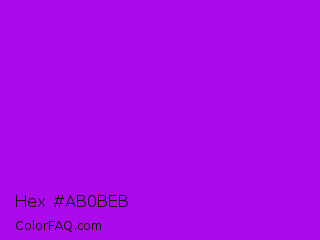 Hex #ab0beb Color is a normal purple color and the nearest color is Vivid Mulberry #b80ce3. Hex code #ab0beb and RGB value is rgb(171,11,235). In RGB color space, this color is composed of 67% red, 4% green, 92% blue, In CMYK color space, this color is composed of 27% cyan, 95% magenta, 0% yellow , 8% black , In HSL color space, this color has a hue angle of 283° , 91% saturation and 48% lightness.