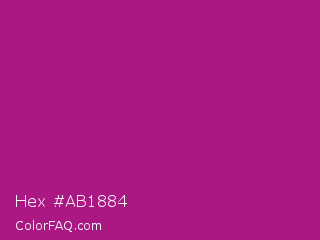 Hex #ab1884 Color is a normal magenta color and the nearest color is Red Violet #c71585. Hex code #ab1884 and RGB value is rgb(171,24,132). In RGB color space, this color is composed of 67% red, 9% green, 52% blue, In CMYK color space, this color is composed of 0% cyan, 86% magenta, 23% yellow , 33% black , In HSL color space, this color has a hue angle of 316° , 75% saturation and 38% lightness.
