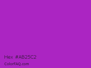 Hex #ab25c2 Color is a normal purple color and the nearest color is Dark Orchid #9932cc. Hex code #ab25c2 and RGB value is rgb(171,37,194). In RGB color space, this color is composed of 67% red, 15% green, 76% blue, In CMYK color space, this color is composed of 12% cyan, 81% magenta, 0% yellow , 24% black , In HSL color space, this color has a hue angle of 291° , 68% saturation and 45% lightness.