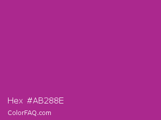 Hex #ab288e Color is a normal magenta color and the nearest color is Fandango #b53389. Hex code #ab288e and RGB value is rgb(171,40,142). In RGB color space, this color is composed of 67% red, 16% green, 56% blue, In CMYK color space, this color is composed of 0% cyan, 77% magenta, 17% yellow , 33% black , In HSL color space, this color has a hue angle of 313° , 62% saturation and 41% lightness.