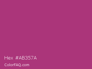 Hex #ab357a Color is a normal magenta color and the nearest color is Maximum Red Purple #a63a79. Hex code #ab357a and RGB value is rgb(171,53,122). In RGB color space, this color is composed of 67% red, 21% green, 48% blue, In CMYK color space, this color is composed of 0% cyan, 69% magenta, 29% yellow , 33% black , In HSL color space, this color has a hue angle of 325° , 53% saturation and 44% lightness.