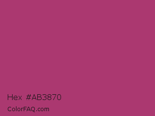 Hex #ab3870 Color is a normal rose color and the nearest color is Royal Heath #ab3472. Hex code #ab3870 and RGB value is rgb(171,56,112). In RGB color space, this color is composed of 67% red, 22% green, 44% blue, In CMYK color space, this color is composed of 0% cyan, 67% magenta, 35% yellow , 33% black , In HSL color space, this color has a hue angle of 331° , 51% saturation and 45% lightness.