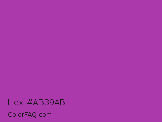 Hex #ab39ab Color is a normal magenta color and the nearest color is Byzantine #bd33a4. Hex code #ab39ab and RGB value is rgb(171,57,171). In RGB color space, this color is composed of 67% red, 22% green, 67% blue, In CMYK color space, this color is composed of 0% cyan, 67% magenta, 0% yellow , 33% black , In HSL color space, this color has a hue angle of 300° , 50% saturation and 45% lightness.