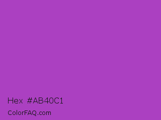 Hex #ab40c1 Color is a normal purple color and the nearest color is Purple Plum #9c51b6. Hex code #ab40c1 and RGB value is rgb(171,64,193). In RGB color space, this color is composed of 67% red, 25% green, 76% blue, In CMYK color space, this color is composed of 11% cyan, 67% magenta, 0% yellow , 24% black , In HSL color space, this color has a hue angle of 290° , 51% saturation and 50% lightness.