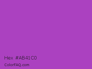 Hex #ab41c0 Color is a normal purple color and the nearest color is Purple Plum #9c51b6. Hex code #ab41c0 and RGB value is rgb(171,65,192). In RGB color space, this color is composed of 67% red, 25% green, 75% blue, In CMYK color space, this color is composed of 11% cyan, 66% magenta, 0% yellow , 25% black , In HSL color space, this color has a hue angle of 290° , 50% saturation and 50% lightness.