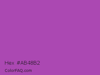 Hex #ab48b2 Color is a normal magenta color and the nearest color is Purple Plum #9c51b6. Hex code #ab48b2 and RGB value is rgb(171,72,178). In RGB color space, this color is composed of 67% red, 28% green, 70% blue, In CMYK color space, this color is composed of 4% cyan, 60% magenta, 0% yellow , 30% black , In HSL color space, this color has a hue angle of 296° , 42% saturation and 49% lightness.