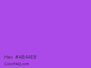 Hex #ab4ae8 Color is a normal purple color and the nearest color is Navy Purple #9457eb. Hex code #ab4ae8 and RGB value is rgb(171,74,232). In RGB color space, this color is composed of 67% red, 29% green, 91% blue, In CMYK color space, this color is composed of 26% cyan, 68% magenta, 0% yellow , 9% black , In HSL color space, this color has a hue angle of 277° , 77% saturation and 60% lightness.