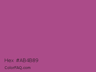 Hex #ab4b89 Color is a normal magenta color and the nearest color is Mystic Maroon #ad4379. Hex code #ab4b89 and RGB value is rgb(171,75,137). In RGB color space, this color is composed of 67% red, 29% green, 54% blue, In CMYK color space, this color is composed of 0% cyan, 56% magenta, 20% yellow , 33% black , In HSL color space, this color has a hue angle of 321° , 39% saturation and 48% lightness.