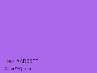 Hex #ab68ee Color is a light violet color and the nearest color is Navy Purple #9457eb. Hex code #ab68ee and RGB value is rgb(171,104,238). In RGB color space, this color is composed of 67% red, 41% green, 93% blue, In CMYK color space, this color is composed of 28% cyan, 56% magenta, 0% yellow , 7% black , In HSL color space, this color has a hue angle of 270° , 80% saturation and 67% lightness.