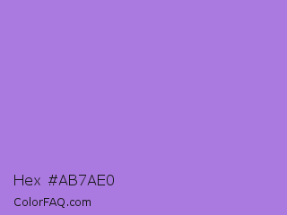 Hex #ab7ae0 Color is a light violet color and the nearest color is Lavender #b57edc. Hex code #ab7ae0 and RGB value is rgb(171,122,224). In RGB color space, this color is composed of 67% red, 48% green, 88% blue, In CMYK color space, this color is composed of 24% cyan, 46% magenta, 0% yellow , 12% black , In HSL color space, this color has a hue angle of 269° , 62% saturation and 68% lightness.