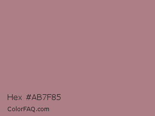 Hex #ab7f85 Color is a normal red color and the nearest color is Pharlap #a3807b. Hex code #ab7f85 and RGB value is rgb(171,127,133). In RGB color space, this color is composed of 67% red, 50% green, 52% blue, In CMYK color space, this color is composed of 0% cyan, 26% magenta, 22% yellow , 33% black , In HSL color space, this color has a hue angle of 352° , 21% saturation and 58% lightness.