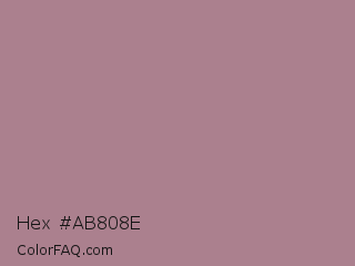 Hex #ab808e Color is a normal rose color and the nearest color is English Lavender #b48395. Hex code #ab808e and RGB value is rgb(171,128,142). In RGB color space, this color is composed of 67% red, 50% green, 56% blue, In CMYK color space, this color is composed of 0% cyan, 25% magenta, 17% yellow , 33% black , In HSL color space, this color has a hue angle of 340° , 20% saturation and 59% lightness.