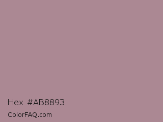 Hex #ab8893 Color is a normal rose color and the nearest color is English Lavender #b48395. Hex code #ab8893 and RGB value is rgb(171,136,147). In RGB color space, this color is composed of 67% red, 53% green, 58% blue, In CMYK color space, this color is composed of 0% cyan, 20% magenta, 14% yellow , 33% black , In HSL color space, this color has a hue angle of 341° , 17% saturation and 60% lightness.
