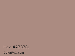 Hex #ab8b81 Color is a normal red color and the nearest color is Sandrift #ab917a. Hex code #ab8b81 and RGB value is rgb(171,139,129). In RGB color space, this color is composed of 67% red, 55% green, 51% blue, In CMYK color space, this color is composed of 0% cyan, 19% magenta, 25% yellow , 33% black , In HSL color space, this color has a hue angle of 14° , 20% saturation and 59% lightness.