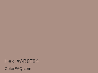 Hex #ab8f84 Color is a normal orange color and the nearest color is Sandrift #ab917a. Hex code #ab8f84 and RGB value is rgb(171,143,132). In RGB color space, this color is composed of 67% red, 56% green, 52% blue, In CMYK color space, this color is composed of 0% cyan, 16% magenta, 23% yellow , 33% black , In HSL color space, this color has a hue angle of 17° , 19% saturation and 59% lightness.