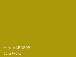 Hex #ab980b Color is a normal yellow color and the nearest color is Sahara #b7a214. Hex code #ab980b and RGB value is rgb(171,152,11). In RGB color space, this color is composed of 67% red, 60% green, 4% blue, In CMYK color space, this color is composed of 0% cyan, 11% magenta, 94% yellow , 33% black , In HSL color space, this color has a hue angle of 53° , 88% saturation and 36% lightness.