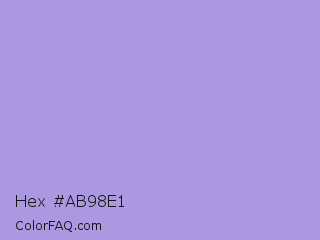 Hex #ab98e1 Color is a light indigo color and the nearest color is Dull Lavender #a899e6. Hex code #ab98e1 and RGB value is rgb(171,152,225). In RGB color space, this color is composed of 67% red, 60% green, 88% blue, In CMYK color space, this color is composed of 24% cyan, 32% magenta, 0% yellow , 12% black , In HSL color space, this color has a hue angle of 256° , 55% saturation and 74% lightness.