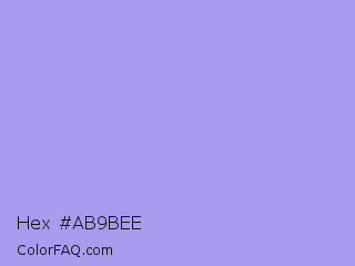 Hex #ab9bee Color is a light indigo color and the nearest color is Dull Lavender #a899e6. Hex code #ab9bee and RGB value is rgb(171,155,238). In RGB color space, this color is composed of 67% red, 61% green, 93% blue, In CMYK color space, this color is composed of 28% cyan, 35% magenta, 0% yellow , 7% black , In HSL color space, this color has a hue angle of 252° , 71% saturation and 77% lightness.