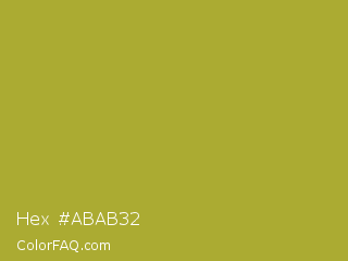 Hex #abab32 Color is a normal yellow color and the nearest color is Brass #b5a642. Hex code #abab32 and RGB value is rgb(171,171,50). In RGB color space, this color is composed of 67% red, 67% green, 20% blue, In CMYK color space, this color is composed of 0% cyan, 0% magenta, 71% yellow , 33% black , In HSL color space, this color has a hue angle of 60° , 55% saturation and 43% lightness.