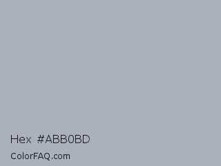 Hex #abb0bd Color is a light blue color and the nearest color is Bombay #afb1b8. Hex code #abb0bd and RGB value is rgb(171,176,189). In RGB color space, this color is composed of 67% red, 69% green, 74% blue, In CMYK color space, this color is composed of 10% cyan, 7% magenta, 0% yellow , 26% black , In HSL color space, this color has a hue angle of 223° , 12% saturation and 71% lightness.
