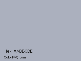 Hex #abb0be Color is a light blue color and the nearest color is Cadet Blue #a9b2c3. Hex code #abb0be and RGB value is rgb(171,176,190). In RGB color space, this color is composed of 67% red, 69% green, 75% blue, In CMYK color space, this color is composed of 10% cyan, 7% magenta, 0% yellow , 25% black , In HSL color space, this color has a hue angle of 224° , 13% saturation and 71% lightness.