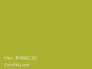 Hex #abb130 Color is a normal yellow color and the nearest color is Citron #9fa91f. Hex code #abb130 and RGB value is rgb(171,177,48). In RGB color space, this color is composed of 67% red, 69% green, 19% blue, In CMYK color space, this color is composed of 3% cyan, 0% magenta, 73% yellow , 31% black , In HSL color space, this color has a hue angle of 63° , 57% saturation and 44% lightness.