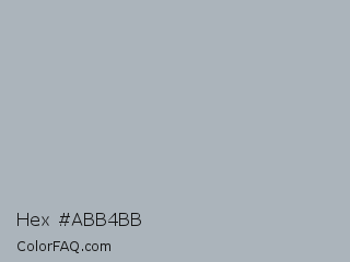 Hex #abb4bb Color is a light blue color and the nearest color is Bombay #afb1b8. Hex code #abb4bb and RGB value is rgb(171,180,187). In RGB color space, this color is composed of 67% red, 71% green, 73% blue, In CMYK color space, this color is composed of 9% cyan, 4% magenta, 0% yellow , 27% black , In HSL color space, this color has a hue angle of 206° , 11% saturation and 70% lightness.