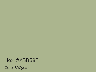 Hex #abb58e Color is a light lime color and the nearest color is Swamp Green #acb78e. Hex code #abb58e and RGB value is rgb(171,181,142). In RGB color space, this color is composed of 67% red, 71% green, 56% blue, In CMYK color space, this color is composed of 6% cyan, 0% magenta, 22% yellow , 29% black , In HSL color space, this color has a hue angle of 75° , 21% saturation and 63% lightness.
