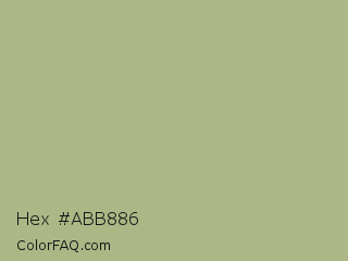 Hex #abb886 Color is a light lime color and the nearest color is Swamp Green #acb78e. Hex code #abb886 and RGB value is rgb(171,184,134). In RGB color space, this color is composed of 67% red, 72% green, 53% blue, In CMYK color space, this color is composed of 7% cyan, 0% magenta, 27% yellow , 28% black , In HSL color space, this color has a hue angle of 76° , 26% saturation and 62% lightness.
