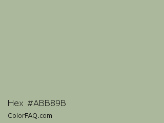 Hex #abb89b Color is a light green color and the nearest color is Laurel Green #a9ba9d. Hex code #abb89b and RGB value is rgb(171,184,155). In RGB color space, this color is composed of 67% red, 72% green, 61% blue, In CMYK color space, this color is composed of 7% cyan, 0% magenta, 16% yellow , 28% black , In HSL color space, this color has a hue angle of 87° , 17% saturation and 66% lightness.