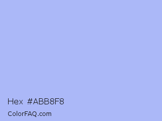 Hex #abb8f8 Color is a very light blue color and the nearest color is Perano #a9bef2. Hex code #abb8f8 and RGB value is rgb(171,184,248). In RGB color space, this color is composed of 67% red, 72% green, 97% blue, In CMYK color space, this color is composed of 31% cyan, 26% magenta, 0% yellow , 3% black , In HSL color space, this color has a hue angle of 230° , 85% saturation and 82% lightness.
