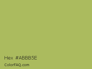 Hex #abbb5e Color is a normal yellow color and the nearest color is Middle Green Yellow #acbf60. Hex code #abbb5e and RGB value is rgb(171,187,94). In RGB color space, this color is composed of 67% red, 73% green, 37% blue, In CMYK color space, this color is composed of 9% cyan, 0% magenta, 50% yellow , 27% black , In HSL color space, this color has a hue angle of 70° , 41% saturation and 55% lightness.