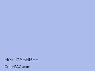 Hex #abbbeb Color is a light blue color and the nearest color is Perano #a9bef2. Hex code #abbbeb and RGB value is rgb(171,187,235). In RGB color space, this color is composed of 67% red, 73% green, 92% blue, In CMYK color space, this color is composed of 27% cyan, 20% magenta, 0% yellow , 8% black , In HSL color space, this color has a hue angle of 225° , 62% saturation and 80% lightness.