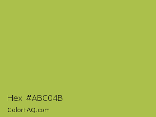 Hex #abc04b Color is a normal lime color and the nearest color is Android Green #a4c639. Hex code #abc04b and RGB value is rgb(171,192,75). In RGB color space, this color is composed of 67% red, 75% green, 29% blue, In CMYK color space, this color is composed of 11% cyan, 0% magenta, 61% yellow , 25% black , In HSL color space, this color has a hue angle of 71° , 48% saturation and 52% lightness.