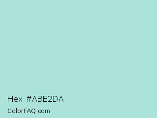 Hex #abe2da Color is a light cyan color and the nearest color is Water Leaf #a1e9de. Hex code #abe2da and RGB value is rgb(171,226,218). In RGB color space, this color is composed of 67% red, 89% green, 85% blue, In CMYK color space, this color is composed of 24% cyan, 0% magenta, 4% yellow , 11% black , In HSL color space, this color has a hue angle of 171° , 49% saturation and 78% lightness.