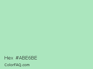 Hex #abe6be Color is a light green color and the nearest color is Chinook #a8e3bd. Hex code #abe6be and RGB value is rgb(171,230,190). In RGB color space, this color is composed of 67% red, 90% green, 75% blue, In CMYK color space, this color is composed of 26% cyan, 0% magenta, 17% yellow , 10% black , In HSL color space, this color has a hue angle of 139° , 54% saturation and 79% lightness.