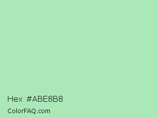 Hex #abe8b8 Color is a light green color and the nearest color is Chinook #a8e3bd. Hex code #abe8b8 and RGB value is rgb(171,232,184). In RGB color space, this color is composed of 67% red, 91% green, 72% blue, In CMYK color space, this color is composed of 26% cyan, 0% magenta, 21% yellow , 9% black , In HSL color space, this color has a hue angle of 133° , 57% saturation and 79% lightness.
