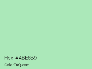 Hex #abe8b9 Color is a light green color and the nearest color is Chinook #a8e3bd. Hex code #abe8b9 and RGB value is rgb(171,232,185). In RGB color space, this color is composed of 67% red, 91% green, 73% blue, In CMYK color space, this color is composed of 26% cyan, 0% magenta, 20% yellow , 9% black , In HSL color space, this color has a hue angle of 134° , 57% saturation and 79% lightness.